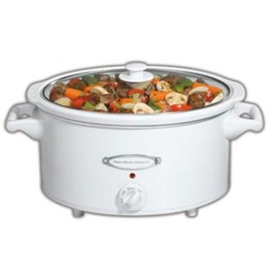 HB7Qt.SlowCookerWHite..This Hamilton Beach white Slow Cooker is the extremely best measurement for an eight lb. chicken or 2 four lb. roasts..Stoneware crock and glass lid are dishwasher secure for instant, easy cleanup..The gasket lid symbols tight together with its Lid Latch? strap and it has full-grip handles for simple shuttle..It has a mess-free lid rest which grasps the lid up securely and directs drips back into the dish.. This Hamilton Beach white Slow Cooker is the extremely best measurement for an eight lb.chicken or two 4 lb.roasts.It has a mess-free lid leisure which dangles the lid up securely and directs drips back into the dish.The gasket lid symbols tight accompanying its Lid Latch? strap and it has full-grip deal accompanyings for easy shuttle.Stoneware crock and glass lid are dishwasher protected for immediate, simple cleanup.It incorporates a method identify grasper and straightforward cord warehouse..